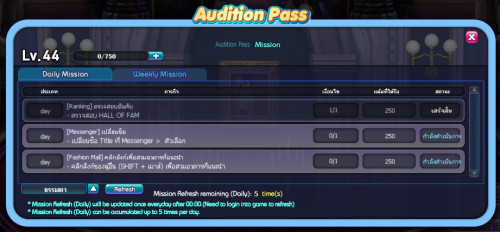 - Audition Pass จะมี 2 แบบคือ Normal Pass และ Premium Pass