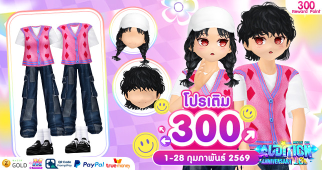 รับไอเทมง่ายๆ เพียงแค่เติมเงินเข้าเกมโดยตรงผ่านช่องทาง Razer Gold PIN, Truemoney, QR Code, M-Card, Paypal เฉพาะราคา 300 บาทเท่านั้นอย่างน้อย 1 รายการ ก็มีสิทธิ์รับเซ็ตถาวร (รับได้ 1 ครั้งต่อไอดีและไอเทมที่ได้รับจะส่งไปยัง MY ITEM เมื่อกดรับของรางวัล) ชวนเพื่อนๆมาใส่ชุดมุ้งมิ้งกันนะ