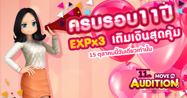 ครบรอบ 11 ปีชวนเพื่อนๆ มาแดนซ์กันสนั่นรับ Exp X3 มากขึ้นกว่าเดิม แค่นั้นยังไม่พอ เอาใจคอเติมทั้งหลายรับ CASH มากขึ้นจากอัตราเติมปกติเมื่อเติม Truemoney หรือ PayPal ราคาใดก็ได้